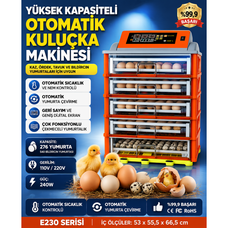 Kuluçka makinesi, yumurtaların kuluçka sürelerinin hızlı sürede tamamlanmasını ve kısa bir zaman içerisinde çok sayıda civciv elde etmeyi sağlar. Kuluçka makinesi tavuk, hindi, ördek, kaz ve bıldırcın gibi kanatlılardan civciv çıkarmak için kullanılır. Kanatlı üretimi sektöründe etkin rol oynayan kuluçka makinesi modelleri, gerek tasarımı gerekse fonksiyonelliği açısıyla çevresel faktörlere uygun olarak çalışacak şekilde tasarlanmıştır.